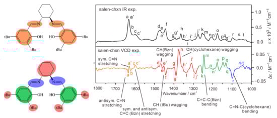 The general assignment of the IR and VCD bands of salen-chxn. The main IR and VCD band features are labelled “a” to “t” to aid the comparison as in Figure 4.