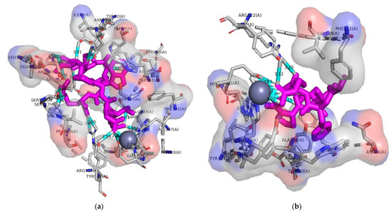 | D-4 | −9.1 kcal/mol | 7 | Glu411, Arg522, Glu403, Zn701 | His387, Glu384, Phe391, Val518, Asn356, Asn66, Trp357, Asp358, His410, Tyr360, Trp59, Tyr394 |