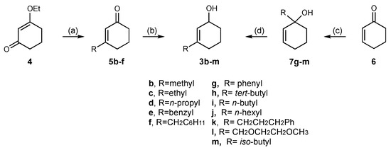 2.1. Synthesis of 3-Alkyl/aryl-2-cyclohexen-1-ols (3b-m)
