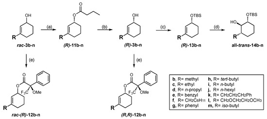 2.2. Enzyme-Catalyzed Kinetic Resolution of Rac-3-alkyl/aryl-2-cyclohexen-1-ol (3b-n)