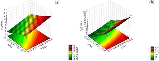 Acid extraction (AE) was used for the isolation of pectins from plant material. Fruits for pectin esterification were washed with tap and distilled water. Peel was manually separated for the pulp, cut into small pieces, and dried at 40 °C for 48 h. The dried peel was ground to a powder. For the extraction, 3 g of grounded power was weighed and 150 mL of distilled water was added (solid/liquid ratio 1:50). In order to select the best extraction conditions, an experiment determining the influence of two independent parameters, such as temperature (70–90 °C) and pH for nitric and citric acid on the extraction yield of kaffir lime pectin, was performed.