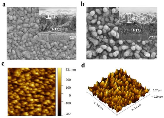 FTIR spectroscopy was conducted using a GangDong FTIR-650 spectrometer (Tianjin, China) between 400 and 4000 cm−1. SEM images were measured on FEI Verious 460 L scanning electron microscope (Hillsboro, OH, USA). AFM images were investigated by Icon Bruker microscope (Ettlingen, Germany). TEM images were measured on a FEI Tecnai G2F20 S-TWIN microscope equipped with an energy-dispersive spectrometer (EDS) (Hillsboro, OH, USA). The TEM sample was prepared by scraping a small amount of the film (0.005 mg) off the FTO substate and dispersing the powder in 1 mL of an ethanol solution by ultrasonication for 40 min. XPS analysis were measured on a Thermo ESCALAB 250 spectrometer (Shanghai, China).
