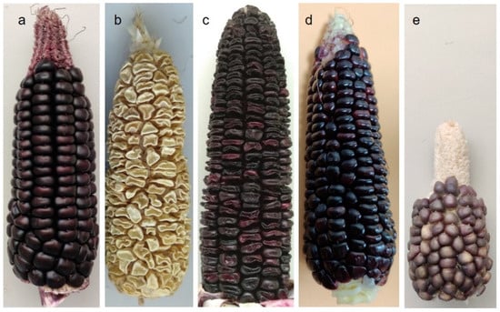 - Paulsmeyer, M.; Chatham, L.; Becker, T.; West, M.; West, L.; Juvik, J. Survey of Anthocyanin Composition and Concentration in Diverse Maize Germplasms. J. Agric. Food Chem. 2017, 65, 4341–4350. [Google Scholar] [CrossRef]