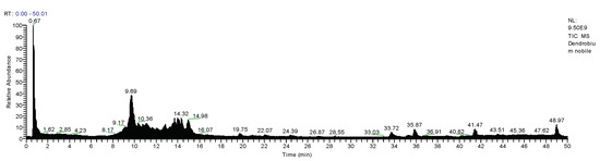 TIC chromatogram of D. nobile extract by UPLC-ESI-Q-Orbitrap.