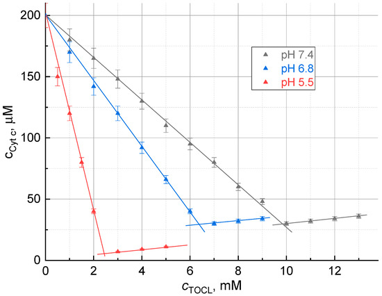2.1. Assessment of the Cyt c–TOCL Complex Composition by Spectrophotometric Titration
