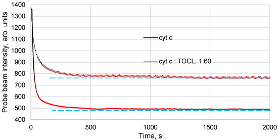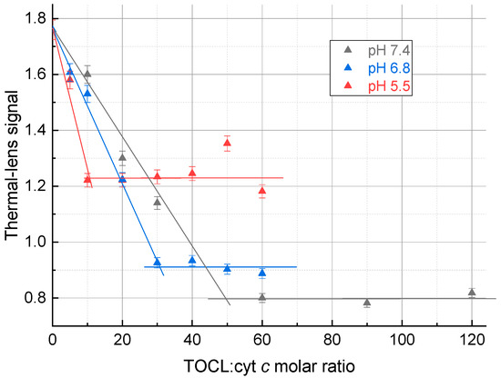 Proskurnin, M.A.; Proskurnina, E.V.; Galimova, V.R.; Alekseev, A.V.; Mikheev, I.V.; Vladimirov, Y.A. Composition of the Cytochrome c Complex with Cardiolipin by Thermal Lens Spectrometry. Molecules 2023, 28, 2692. https://doi.org/10.3390/molecules28062692