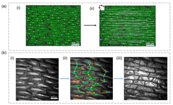 Despite significant progress in the development of segmentation techniques, accurately assigning measurement data to individual cells remains a challenge in the field of single cell analysis. Two main methodologies exist to tackle this issue. The first method involves segmenting the cells first and then using the segmentation results to guide the sampling process. On the other hand, the second method involves conducting the sampling according to conventional techniques, followed by data assignment. Akos Vertes et al. tried to segment the cells first, and then find cell centroid positions, enabling the automation of sequential f-LAESI-MS analysis of tissue-embedded single cells through programmable automatic sampling on L.longiflorum leaf (Figure 5a) and Allium cepa bulb (Figure 5b) [51,52]. However, this approach has only been validated for plant tissues so far, likely due to the larger size and clearly visible cell walls of plant cells under light microscopy, which makes cell segmentation achievable through the thresholding of gray-scale levels.