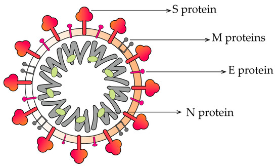Structure of SARS-CoV-2. Abbreviations: S: Spike; M: Membrane; E: Envelope; N: Nucleocapsid.