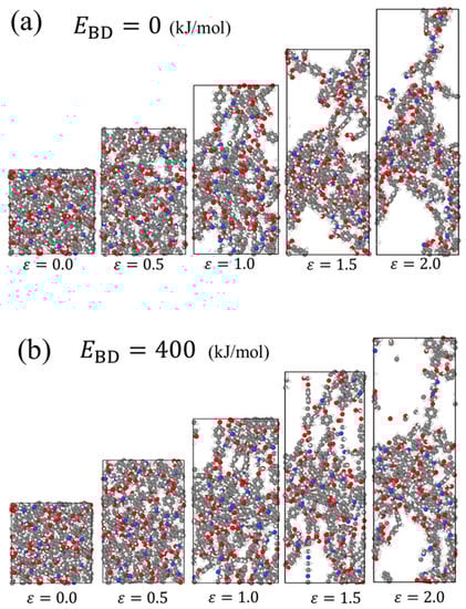 - Li, H.; Wu, H.; Li, B.; Gao, Y.; Zhao, X.; Zhang, L. Molecular dynamics simulation of fracture mechanism in the double interpenetrated cross-linked polymer. Polymer 2020, 199, 122571. [Google Scholar] [CrossRef]