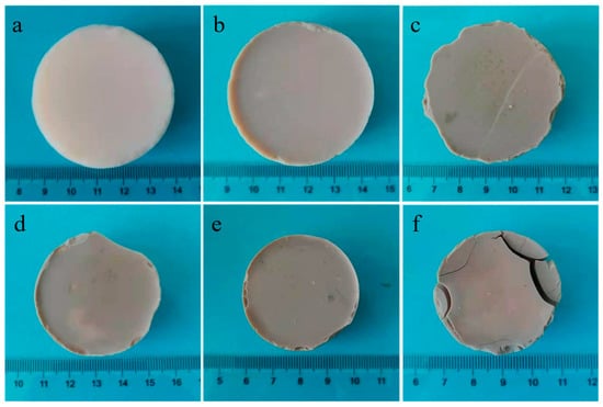 Digital photos of Al2O3-SiO2 composite aerogels (a) AS0, (b) AS1, (c) AS2, (d) AS3, (e) AS4 and (f) AS5.