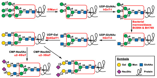 Zhang, L.; Li, Y.; Li, R.; Yang, X.; Zheng, Z.; Fu, J.; Yu, H.; Chen, X. Glycoprotein In Vitro N-Glycan Processing Using Enzymes Expressed in E. coli. Molecules 2023, 28, 2753. https://doi.org/10.3390/molecules28062753