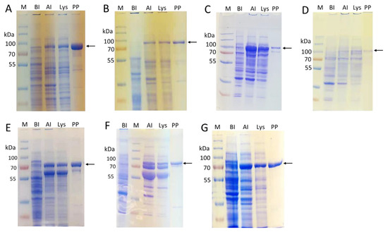 - Moremen, K.W.; Ramiah, A.; Stuart, M.; Steel, J.; Meng, L.; Forouhar, F.; Moniz, H.A.; Gahlay, G.; Gao, Z.; Chapla, D.; et al. Expression system for structural and functional studies of human glycosylation enzymes. Nat. Chem. Biol. 2018, 14, 156–162. [Google Scholar] [CrossRef]