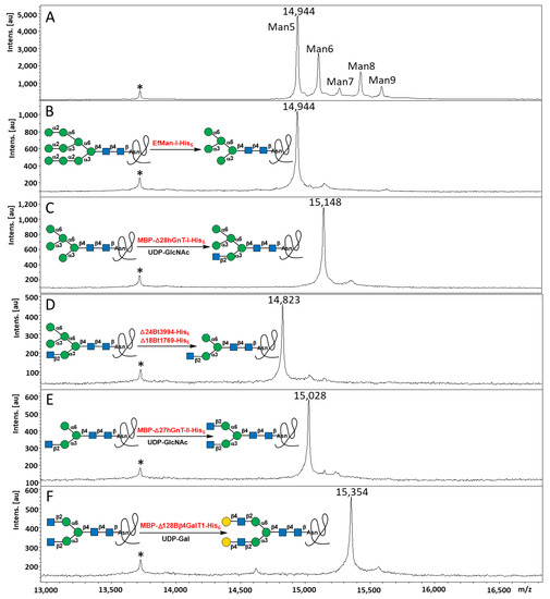 - Stanley, P.; Moremen, K.W.; Lewis, N.E.; Taniguchi, N.; Aebi, M. N-Glycans. In Essentials of Glycobiology, 4th ed.; Varki, A., Cummings, R.D., Esko, J.D., Stanley, P., Hart, G.W., Aebi, M., Mohnen, D., Kinoshita, T., Packer, N.H., Prestegard, J.H., et al., Eds.; Cold Spring Harbor Laboratory Press: Cold Spring Harbor, NY, USA, 2022; pp. 103–116. [Google Scholar]