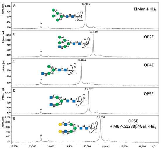 - Li, Y.; Li, R.; Yu, H.; Sheng, X.; Wang, J.; Fisher, A.J.; Chen, X. Enterococcus faecalis alpha1-2-mannosidase (EfMan-I): An efficient catalyst for glycoprotein N-glycan modification. FEBS Lett. 2020, 594, 439–451. [Google Scholar] [CrossRef] [PubMed]