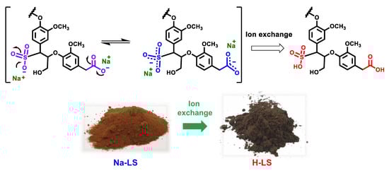 Chemical conversion and color change of Na-LS to H-LS using ion exchange chromatography.