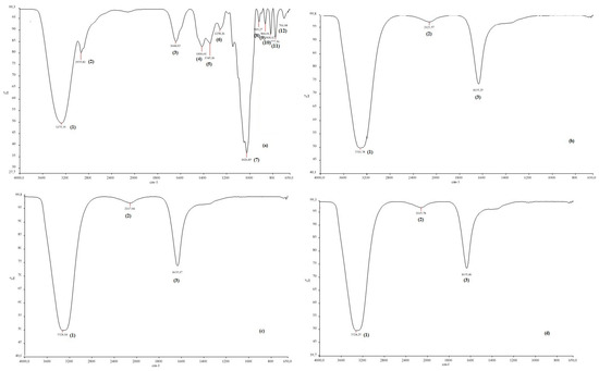 FTIR spectra of chestnut honey (a) and CH-AgNPs at 30 (b), 60 (c) and 90 °C) (d).