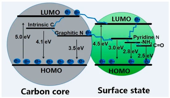 - Zhu, S.; Song, Y.; Zhao, X.; Shao, J.; Zhang, J.; Yang, B. The photoluminescence mechanism in carbon dots (graphene quantum dots, carbon nanodots, and polymer dots): Current state and future perspective. Nano Res. 2015, 8, 355–381. [Google Scholar] [CrossRef]