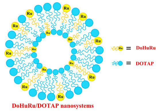 Schematic representation of liposomal DOTAP-based nanoaggregates containing the nucleolipid-based Ru(III) complex DoHuRu.