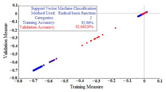 The support vector machine (SVM) is an algorithm developed on the basis of statistical learning theory to solve machine learning problems. It has the advantage of high flexibility and can handle a large number of samples. SVM are widely used to solve regression problems and can create robust analysis models to effectively reduce the influence of outliers [59]. The basic idea of SVM comes from the optimal classification plane of linear discrimination, so as to improve the prediction ability and reduce the classification error rate [60].
