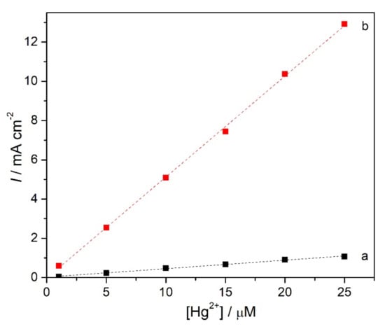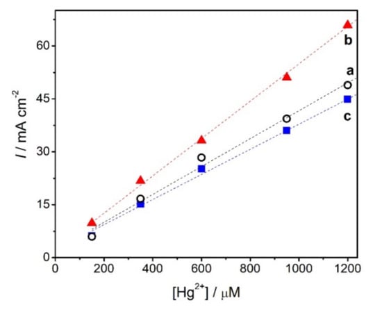 2.2. Electrochemical Characterisation of the Modified Electrodes in the Presence of Hg2+