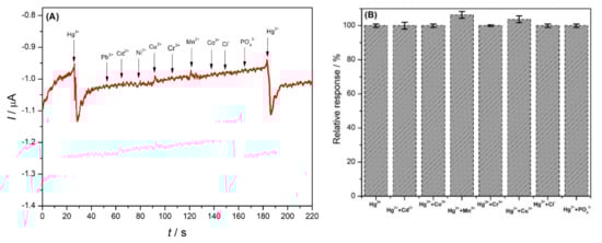 - Bao, Q.; Li, G.; Yang, Z.; Pan, P.; Liu, J.; Chang, J. Electrochemical performance of a three-layer electrode based on Bi nanoparticles, multi-walled carbon nanotube composites for simultaneous Hg(II) and Cu(II) detection. Chin. Chem. Lett. 2020, 31, 2752–2756. [Google Scholar] [CrossRef]