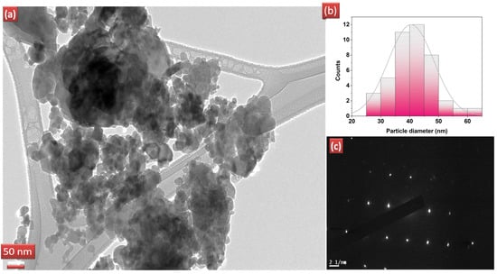 X-ray diffraction (X’Pert Pro, Malvern Panalytical, Malvern, UK) was used to determine the crystal structure as well as other structural parameters of the fabricated photo catalysts. Scanning electron microscope (SEM; SU8010, Hitachi High-Technologies, Tokyo, Japan) micrographs were used to examine the surface morphology of the produced catalysts. The particle size analysis was performed using a transmission electron microscope (TEM H-7500, Hitachi High-Technologies, Tokyo, Japan). The valence state determination of the elements was performed using an X-ray photoelectron spectrometer (XPS; Nexsa base, Thermofisher Scientific, Waltham, MA, USA). The bandgap was identified by tracking the absorbance spectra using a UV-VIS-NIR spectrophotometer (1900i, Shimadzu, Japan). We collected data on the magnetic properties of the materials by measuring their M-H curves with a vibrating sample magnetometer (EV7, MicroSense, Lowell, MA, USA). A fluorescence spectrometer was utilised to determine the photoluminescence spectra for the produced photocatalysts (F-4600, 325 nm excitation wavelength, Hitachi High-Technologies, Tokyo, Japan).