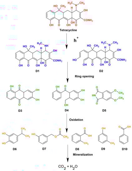 - Ahmad, F.; Zhu, D.; Sun, J. Environmental fate of tetracycline antibiotics: Degradation pathway mechanisms, challenges, and perspectives. Environ. Sci. Eur. 2021, 33, 64. [Google Scholar] [CrossRef]