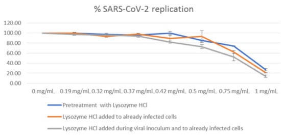 Antiviral activity of lysozyme HCl against SARS-CoV-2, expressed as percentage of viral replication.