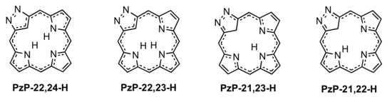 2.1. Aromatic and Nonaromatic Tautomers of Pyrazoloporphyrins