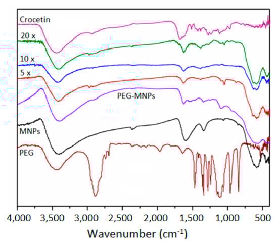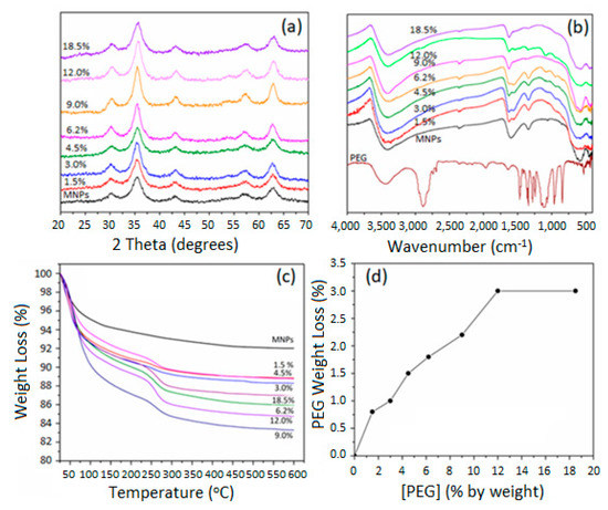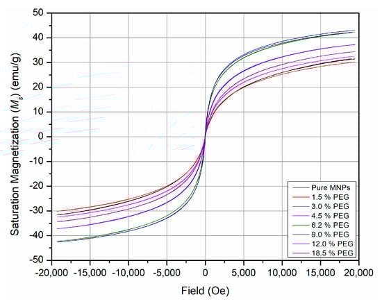 2.2. Characterization of PEG-Coated MNPs