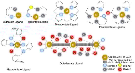 - Loubalová, I.; Kopel, P. Coordination Compounds of Cu, Zn, and Ni with Dicarboxylic Acids and N Donor Ligands, and Their Biological Activity: A Review. Molecules 2023, 28, 1445. [Google Scholar] [CrossRef]