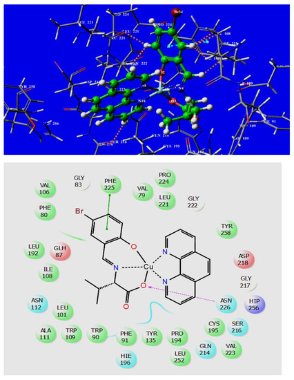 The discovery of cisplatin (cis-dichlorodiammine platinum(II)) and its subsequent use as a drug for the treatment of numerous human tumors sparked the development of advanced medicinal inorganic chemistry, which, in turn, was facilitated by inorganic chemists’ extensive knowledge of the coordination and redox characteristics of metal ions [1,2]. Schiff bases [3,4] have been used in countless organic syntheses and analyses of biomedical activities, such as anticancer [3], anti-inflammatory [4], anti-tubercular [5], antioxidant [6], and antibacterial [7], due to the occurrence of a bonding interaction with core metal ions upon complexation. The presence of azomethane bonds has demonstrated a good ability to coordinate metal ions, thereby yielding metal complexes with interesting structural and electronic properties. Additionally, it has been noted that a variety of processes have benefited from the mixed ligand complexes of amino-acid-based Schiff bases and heterocyclic bases with transition metal ions [8]. These processes have improved their functionality and product selectivity. More efficient methods of synthesis and the thermal stability of these complexes have greatly contributed to their potential biological uses as metal complexes in applications involving antibacterial activity and in vitro cytotoxicity. Significant efforts have been made in the field of catalysis to achieve Mannich reactions in water using various Lewis or Bronsted acid catalysts, such as Bi(OTf) 3.4H2O [9], scandium tris(dodecyl sulfate) [10], HBF4 [11], dodecylbenzenesulfonic acid [12], acidic liquids [13], SO3H-functionalized liquids [14], and amino acids [15]. This study aims to present conventional and sustainable ways of creating and utilizing metal (II) complex salts as catalysts. We report the synthesis of Cu(II), Ni(II), Co(II), and Zn(II) complexes using Schiff bases (L-valine with 5-bromosalicylaldehyde) and heterocyclic bases (1,10-phenanthroline or 2,2′-bipyridyl). To further comprehend the structural properties of these complexes, a wide range of physical techniques were used for their characterization. Herein, Schiff base metal complexes were used as antibacterial agents against bacterial cells at various concentrations. Similarly, in the quest for obtaining more effective and selective antitumor agents, this study investigated the cytotoxic effects of the developed Cu(II) complexes on three distinct human cancer cell lines. Nontumorigenic human dermal fibroblast cells were used as a normal cell line to test the toxicity of the complexes. Consequently, theoretical research was conducted on all metal(II) complexes to examine their orbitals. In addition, molecular docking investigations were used to determine how well the complexes bind to the active site of human thymidylate synthase. Therefore, through the abovementioned contributions, we report Co(II), Ni(II), Cu(II), and Zn(II) complexes containing a tridentate-based potassium (E)-2-((5-bromo-2-hydroxy benzylidene)amino)-3-methylbutanoate (HL) ligand, which also supports some other coligands. Furthermore, the molecular structures of the complexes were optimized by DFT calculations. The synthesized metal complexes have been utilized for catalytic and biological applications.