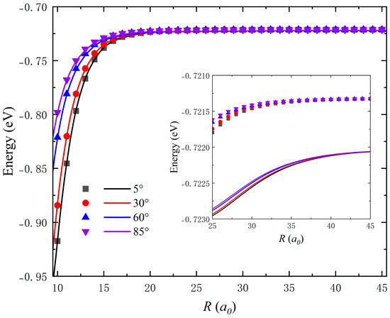 For the ultracold reaction, long-range interaction in the reactant channel is crucial for the dynamics calculations, and the minor change of the long-range potential may generate distinct dynamics characteristics. Figure 6 displays the long-range interaction potentials along the radial coordinate obtained on the GP PES at four fixed Jacobi angles (θ = 5°, 30°, 60° and 85°) with the bond length of Na2 fixed at 6.01 a0. It is clear that the fitted long-range potentials are in good agreement with the original high-level ab initio values for each Jacobi angle, and the corresponding difference is less than 1 meV. There is still minor interaction at the long-range region until R reaches around 40 a0, and the GP PES can reproduce this variation tendency well. Therefore, the GPR PES is sufficiently accurate for describing the long-range interaction. According to the above results and analysis, it can be concluded that the constructed ground-state LiNa2 PES is globally accurate, which is suitable for the dynamics calculations of the Li(2S) + Na2 reactive system under low temperatures even ultracold conditions.