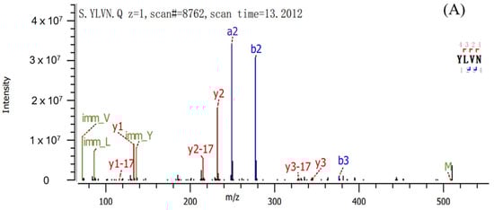 The fraction with the highest DPPH and ABTS antioxidant activities was further purified using an RP-column named Cosmosil pbr (4.6 × 250 mm, 5 μm). A solution of 2% acetonitrile containing 0.065% TFA was used as buffer A; 80% acetonitrile containing 0.05% TFA was used as buffer B. A linear gradient elution program was used: 0–5 min, 100% buffer A; 5.1–50 min, 0–40% buffer B; 50–60 min, 40–0% buffer B; injection volume: 10 μL; elution flow rate: 1 mL/min. The fractions with the highest DPPH and ABTS antioxidant activities were further separated and purified using XselectTM CSH130 column (4.6 × 150 mm, 3.5 μm) with the same elution conditions of Cosmosil pbr. The highest active fractions were collected, lyophilized and prepared to identify the sequence of the purified peptide.