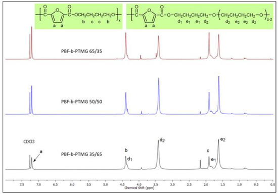 1H-NMR spectra of PBF-b-PTMG copolymers.