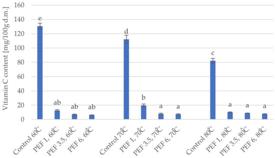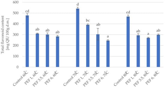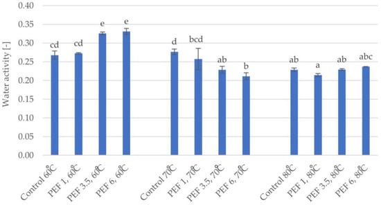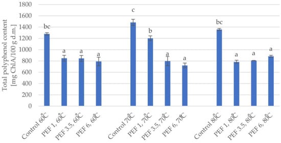 | PEF 6, 80 °C | 80 | 6 | 2.59 ± 0.14 abc | 8.06 ± 0.27 ab |