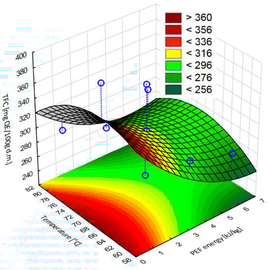 | Temperature (°C) | PEF (kJ/kg) | DPPH (mg TE/g d.m.) | RP (mg TE/g d.m.) | |