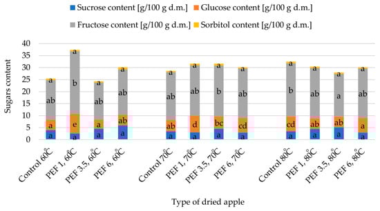 2.6. The Influence of PEF on the Content of Sugars in Dried Apple Tissue
