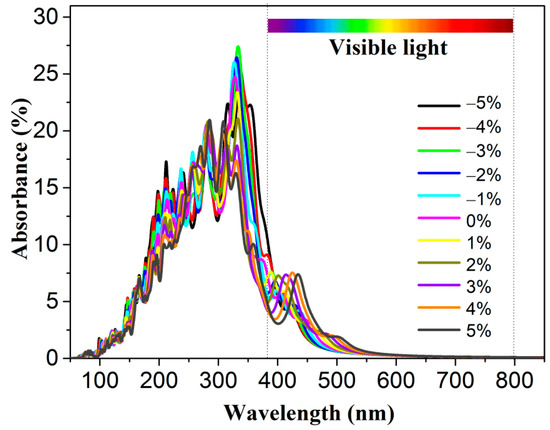 Figure 7. The absorbance of 2D polar monolayer SiTe under strain engineering.
