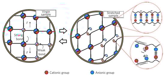 Schematic diagram of PA gel network containing ionic bonds of different strengths [93].