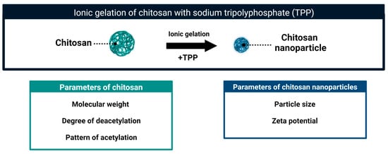 Schematic representation of the formation of chitosan nanoparticles and their basic parameters.