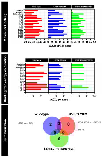 - Rajith, B.; Chakraborty, C.; NagaSundaram, N.; Ali, S.K.; Zhu, H. Structural signature of the G719S-T790M double mutation in the EGFR kinase domain and its response to inhibitors. Sci. Rep. 2014, 4, 5868. [Google Scholar]