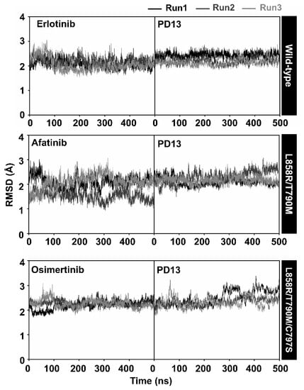 - Gajiwala, K.S.; Feng, J.; Ferre, R.; Ryan, K.; Brodsky, O.; Weinrich, S.; Kath, J.C.; Stewart, A. Insights into the aberrant activity of mutant EGFR kinase domain and drug recognition. Structure 2013, 21, 209–219. [Google Scholar] [CrossRef] [PubMed]