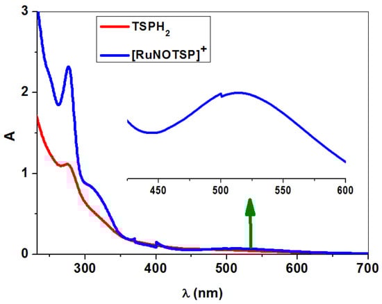 UV–vis absorption spectra of [RuNOTSP]+ and TSPH2 in methanol.