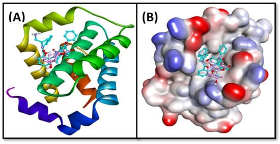 Molecular interaction between Bcl-2 and selected ligands. (A) Bcl-2 and DRO interaction, and (B) Bcl-2 and chlorojanerin interaction.