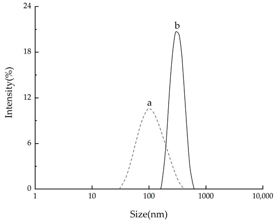The particle size distributions of CNCs extracted by the two methods were analyzed by the laser diffraction particle size analyzer (Zetasizer Nano ZS90, Malvern Panalytical Ltd., Malvern, UK) (Figure 7). The average lengths of CNCs extracted by the two methods were found to be 467 nm and 178 nm, respectively, which were within the nanoscale range. The swelling-SA-catalyzed hydrolysis method resulted in a narrower and more uniform length distribution of CNCs compared to traditional hydrolysis, which was attributed to its more uniform reaction.