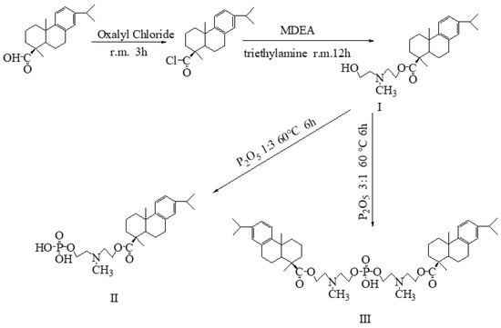 - Li, J.; Lin, H.X.; Chen, X.Y.; Zhu, J.R.; Yang, M.S.; Yang, J.; Han, C.R. Self-assembled structures and excellent surface properties of a novel anionic phosphate diester surfactant derived from natural rosin acids. J. Colloid Interface Sci. 2017, 486, 67–74. [Google Scholar] [CrossRef]