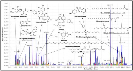 Identified phytochemicals from MZmine 2.53 based on TIC.