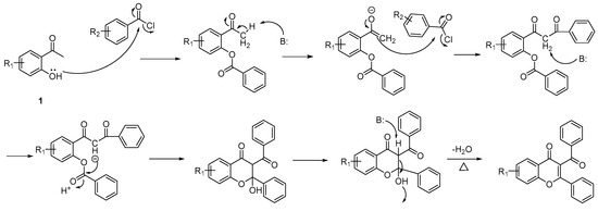 Purposed mechanism of chromone synthesis using modified Baker–Venkataraman reactions.