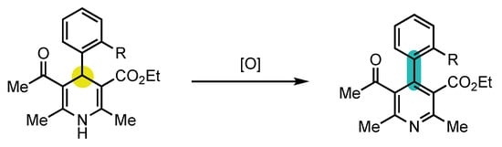 - Koop, B.; Straub, A.; Schäfer, H.J. Stereoselective oxidation of 4-aryl-1,4-dihydropyridines to axially chiral 4-arylpyridines with 2,2,6,6-tetramethyl-1-oxopiperidinium tetrafluoroborate (TEMPO+BF4-). Tetrahedron Asymmetry 2001, 12, 341–345. [Google Scholar] [CrossRef]
